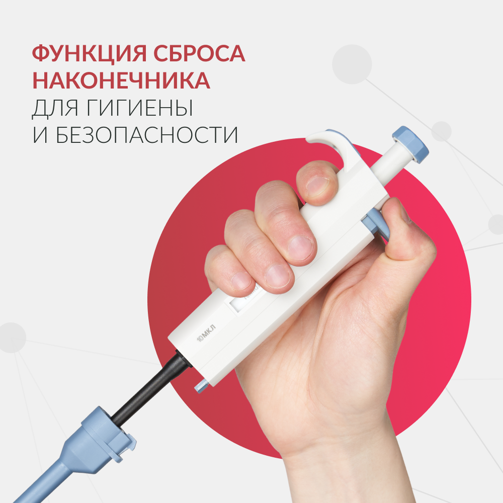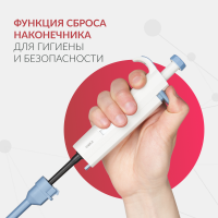 | Особенности | Фиксированный ообъём; 2 режима дозирования; механизм сбрасывания наконечника |