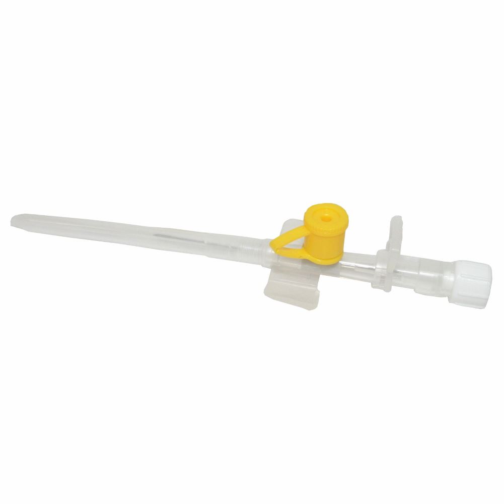 -прозрачный павильон иглы с разъемом луер-лок оснащен двумя пазами для фиксации стилета с павильоном катетера, пальцевой упор