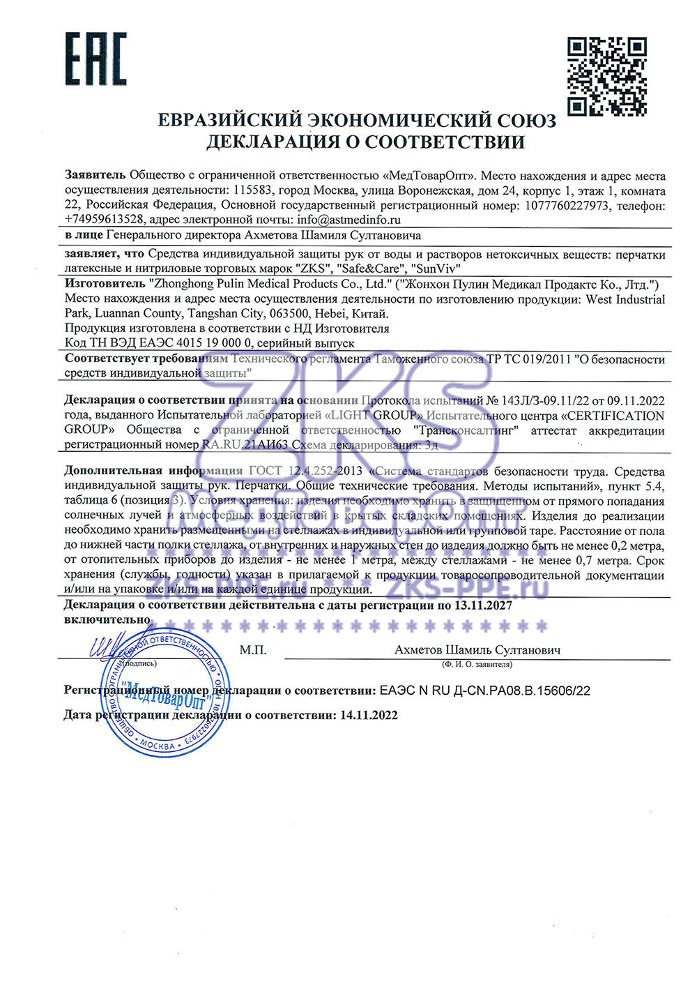 Перчатки ZKS™ нитриловые "Intro Duplex" голубые.
