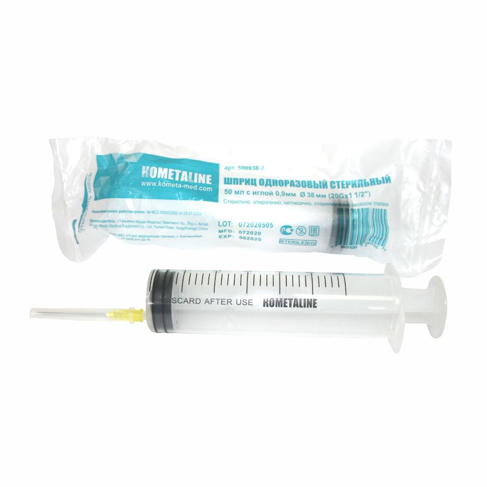 Шприц трехкомпонентный 50 мл с иглой 0,9х38 КОМЕТАLINE (20/400)